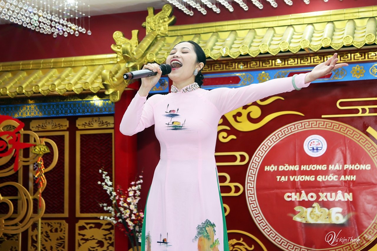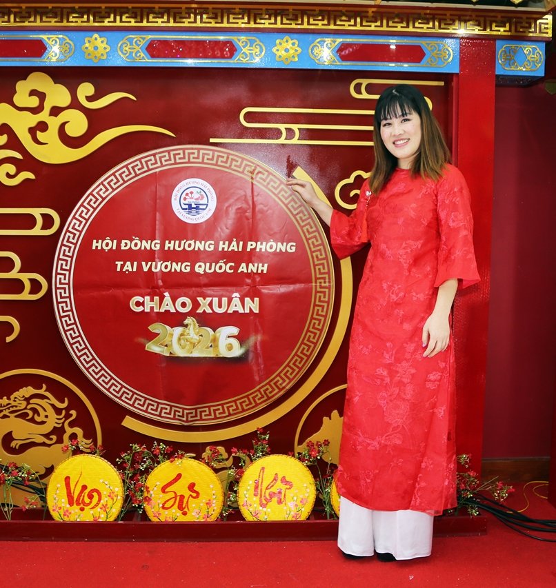.Bà Mỹ Lệ chủ tịch Hội người Việt Nam tại Vương quốc Anh tới tham dự chương trình , bà phát biểu bày tỏ sự ngưỡng mộ Hội đồng hương Hải Phòng và cầu chúc mọi người năm mới 2026 tràn đầy niềm vui hạnh phúc và thành công trong cuộc sống .